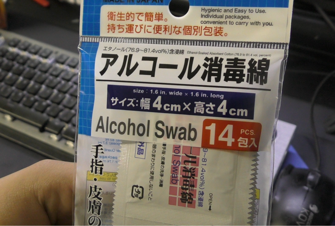 この、百円ショップで売っているアルコール消毒綿を利用しています。